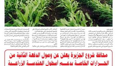 مشروع الجزيرة يسهم في خفض أسعار الذرة من 235 إلى 85 ألف جنيه أسهم تعافي مشروع الجزيرة وتحسن الأداء الزراعي…