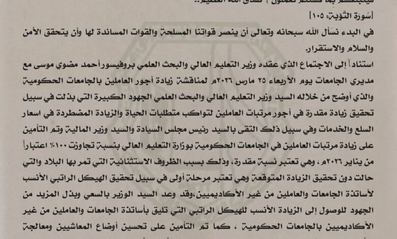 وزارة التعليم العالي والبحث العلمي. اصدرت جامعة أم درمان الإسلامية بيان توضيحي بخصوص زيادة أجور العاملين بالجامعات الحكومية بوزارة التعليم…
