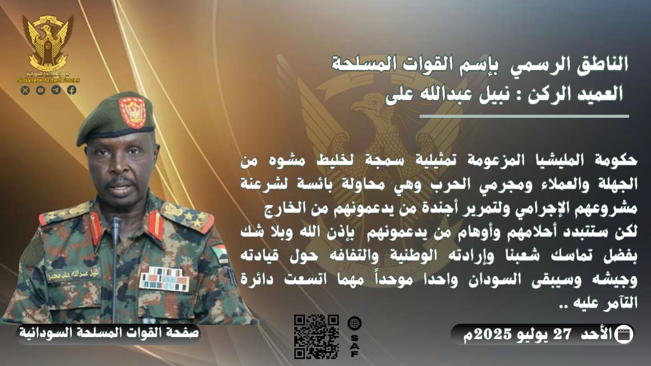 العميد الركن نبيل عبدالله :حكومة المليشيا تمثيلية بائسة… وسنُسقط أوهامهم بإرادة الشعب…
