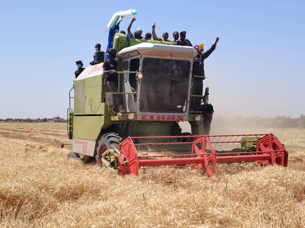 دشن الأستاذ الطاهر إبراهيم الخير والي ولاية الجزيرة صباح اليوم برفقة أعضاء لجنة أمن الولاية ووزير المالية والإقتصاد والقوى العاملة بالولاية حصاد محصول القمح التقاوي بحواشة المزارع الطيب العجب علي بمكتب الحجيرات قسم معتوق ترعة الصفا والتي حققت متوسط إنتاج 30 جوال زنت 100 كيلو في الفدان .