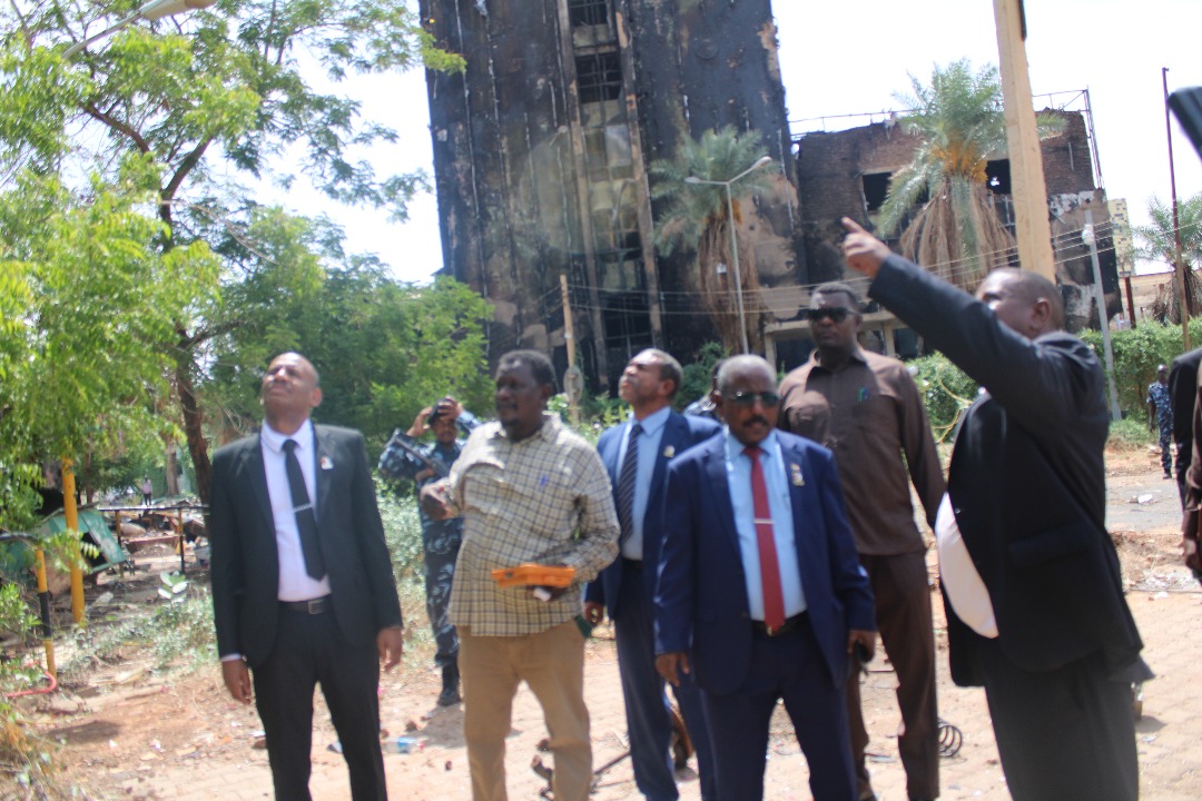 اطلع وزير العدل د. عبدالله درف علي حجم الدمار الذي لحق ببرج وزارة العدل و ادارتي العون القانوني و الملكية الفكرية جراء الاستهداف الممنهج من قبل المليشيا الإرهابية و ذلك في اطار زيارته لولاية الخرطوم.