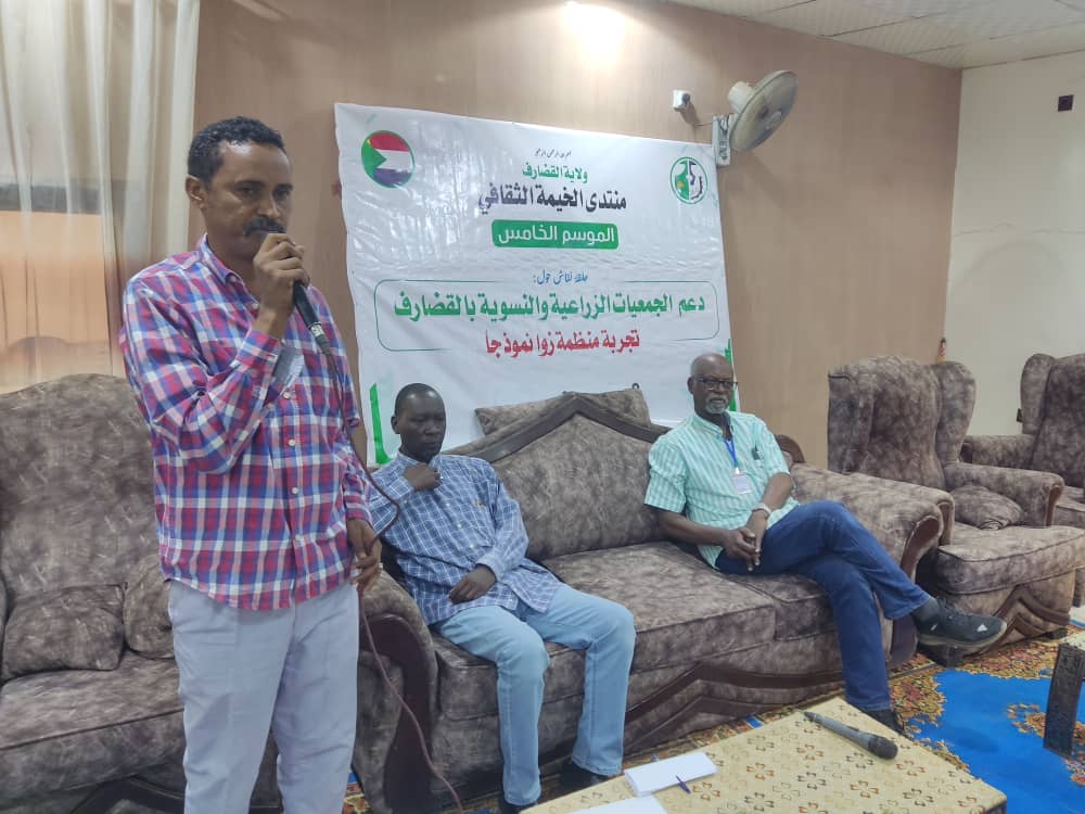 المدير القطري لمنظمة زوا بالإنابة د. الطيب عمر، أكد خلال منتدى خيمة الصحفيين بالقضارف، في موسمها الخامس، اليوم الثلاثاء، حول دعم الجمعيات الزراعية والنسوية بالقضارف “تجربة زوا نموذجاً” تضافر كافة الجهود بالولاية للارتقاء بالقطاع الزراعي لصغار المنتجين من أجل تحقيق الأمن الغذائي، مشيرا للتطور الكبير الذى طرأ على المجتمعات التى نظمت أنفسها فى شكل جمعيات زراعية في الإنتاج للمحاصيل المختلفة وتعلم سلاسل القيمة المضافة من خلال إقامة الصناعات الصغيرة ومعرفة كيفية التمويل عبر المصارف والتدريب المستمر فى استخدام التقانة والتخزين والتسويق، مشيدا بمنظمة CIZ فى دعم الجمعيات بالآليات الزراعية، لافتاً إلى إستمرار المشروع بولاية القضارف ودخول محليات الرهد ووسط القضارف والقلابات الغربية، بجانب إدخال مشروع تحقيق الأمن الغذائي للعام ٢٠٢٤م فى محليات المفازة وباسندا والفشقة والنحل وود الحليو بولاية كسلا، مؤكداً الاهتمام بالشق النسائي بعطائها نسبة (٥٥%) والرجال نسبة (٤٥%).