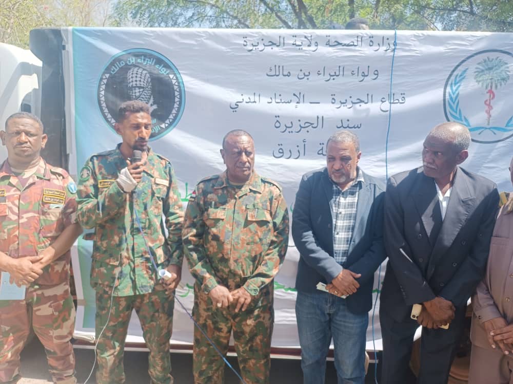 دشن الأستاذ الطاهر إبراهيم الخير والي ولاية الجزيرة صباح اليوم بأمانة الحكومة بمدني قافلة السند والدعم التي سيرتها وزارة الصحة بالولاية ولواء البراء بن مالك لمنطقتي السريحة وازرق بمحلية الكاملين حيث جدد الوالي إلتزام حكومة الولاية بتقديم الخدمات والدعم لإنسان الولاية .. من جانبه أعلن الدكتور أسامة عبد الرحمن مدير عام وزارة الصحة الوزير المفوض إنطلاقة ثورة الخدمات والإعمار والتنمية وأوضح أن برنامج القافلة يشتمل على ستة أيام علاجية وتوزيع أدوية مجانية وحملات إصحاح بيئة ومكافحة نواقل الأمراض وتثقيف صحي وإزالة مخلفات الحرب وتضم 70 كادرا ..