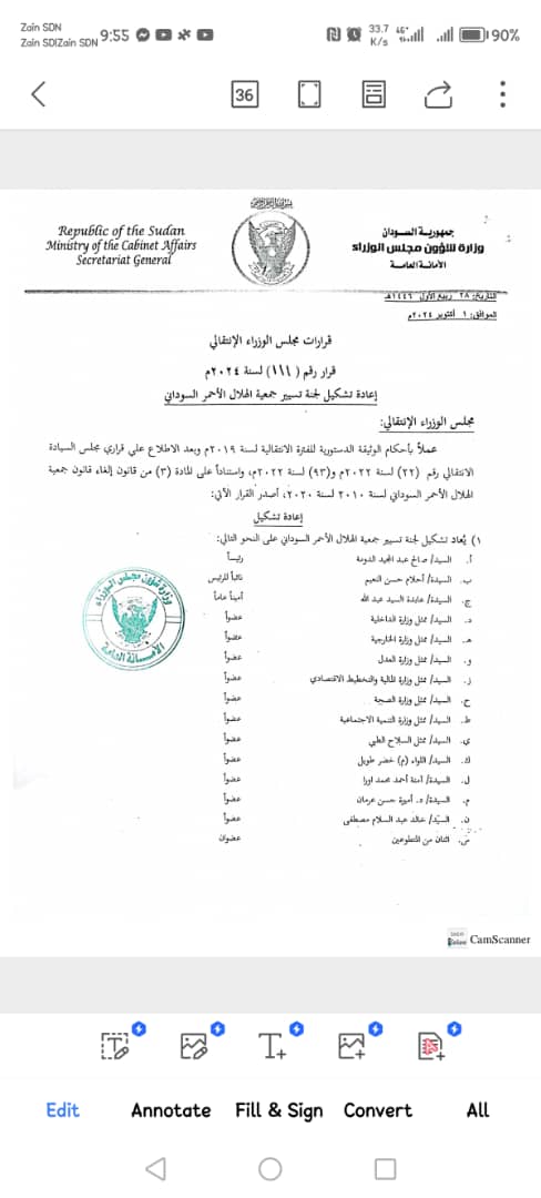 أصدر مجلس الوزراء الإنتقالي قرار حمل الرقم ( ١١١) لسنة ٢٠٢٤م بإعادة تشكيل لجنة تسيير جمعية الهلال الأحمر السوداني