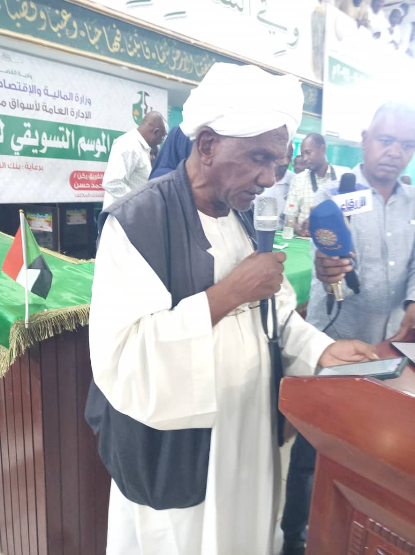 وقال رئيس اللجنة المفوضة للمزارعين بالقضارف احمد عبد الرحيم العوض فى احتفال بافتتاح الموسم الصيفي التسويق بحضور والي القضارف وأعضاء حكومته بجانب وزيز التنمية الاجتماعية احمد ادم بخيت والشركات الزراعة ورجال الأعمال والجيش الاخضر من المزارعين.