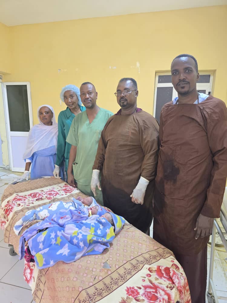 وقد قاد الفريق الطبي اختصاصي النساء والتوليد د. فؤاد أحمد حبيب الله، إلى جانب د. حامد موسى محمداني، وفريق التخدير المكوَّن من د. إبراهيم خالد فضيل ود. معاوية محمد ميرغني، وبمشاركة فاعلة من فريق التحضير تقني تحضير أحمد محمد آدم (حمودة) وتقني تحضير فاطمة آدم عمر (مواهب).