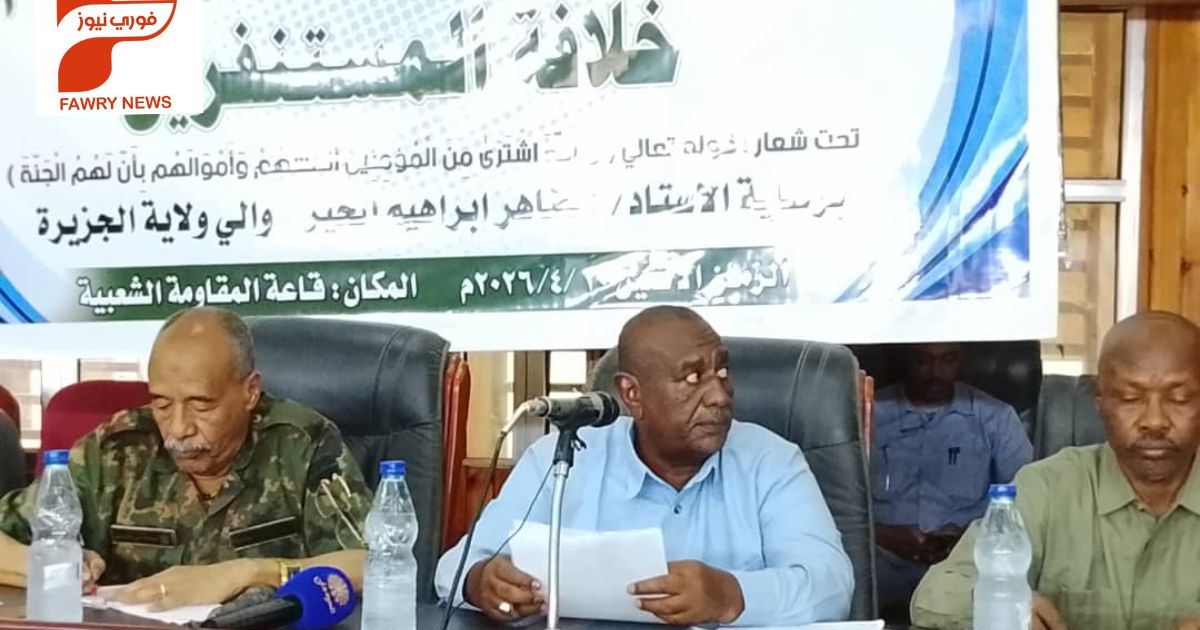 شدد والي ولاية الجزيرة الأستاذ الطاهر إبراهيم الخير أن دعم خلافة المستنفرين ورعاية أسر الشهداء تمثلان أولوية قصوى لحكومة الولاية، إلى جانب تعزيز الأمن والاستقرار وتطوير الخدمات ودفع مسيرة التنمية.