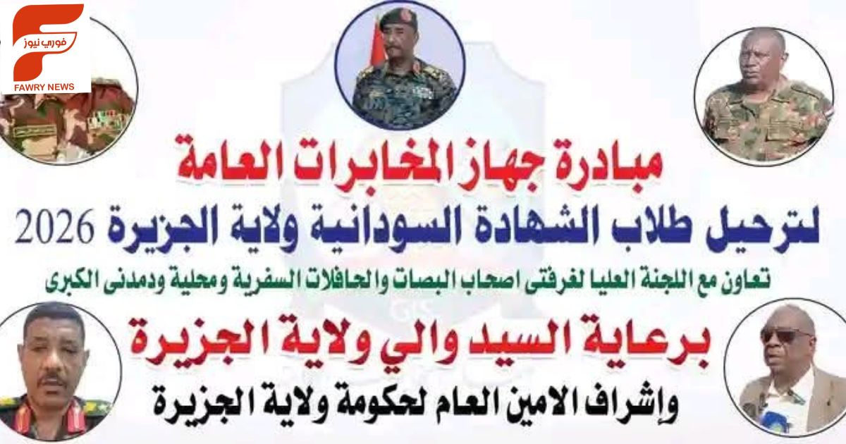 أعلن جهاز المخابرات العامة بولاية الجزيرة عن اكتمال الترتيبات لتنفيذ مبادرة ترحيل طلاب الشهادة السودانية بالولاية ولفت العميد أمن مامون الزين مدير جهاز المخابرات العامة بالولاية في تصريح (لسونا) ان المبادرة تأتي بمشاركة أمانة حكومة الولاية والغرفة القومية للحافلات السفرية وغرفة الباصات السفرية بعدد 100 مركبة لترحيل الطلاب.